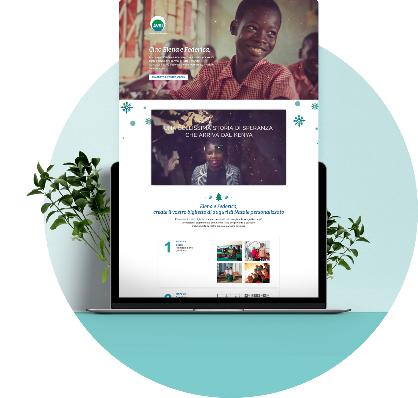 Avsi sa quanto i suoi donatori siano preziosi e quanto sia importante ringraziarli e insieme abbiamo trovato il modo per farlo in modo speciale, con un tocco personale e innovativo. Abbiamo infatti inserito all’interno del donor journey uno strumento nuovo, un vero e proprio regalo per il donatore: il direct video (video personalizzato) in occasione del Natale.