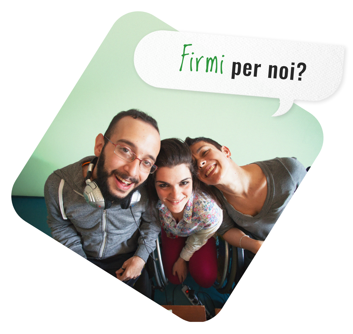 La foto dei beneficiari di UILDM scelta per il manifesto di campagna esprime immediatamente la positività del messaggio e coinvolge emotivamente il pubblico.