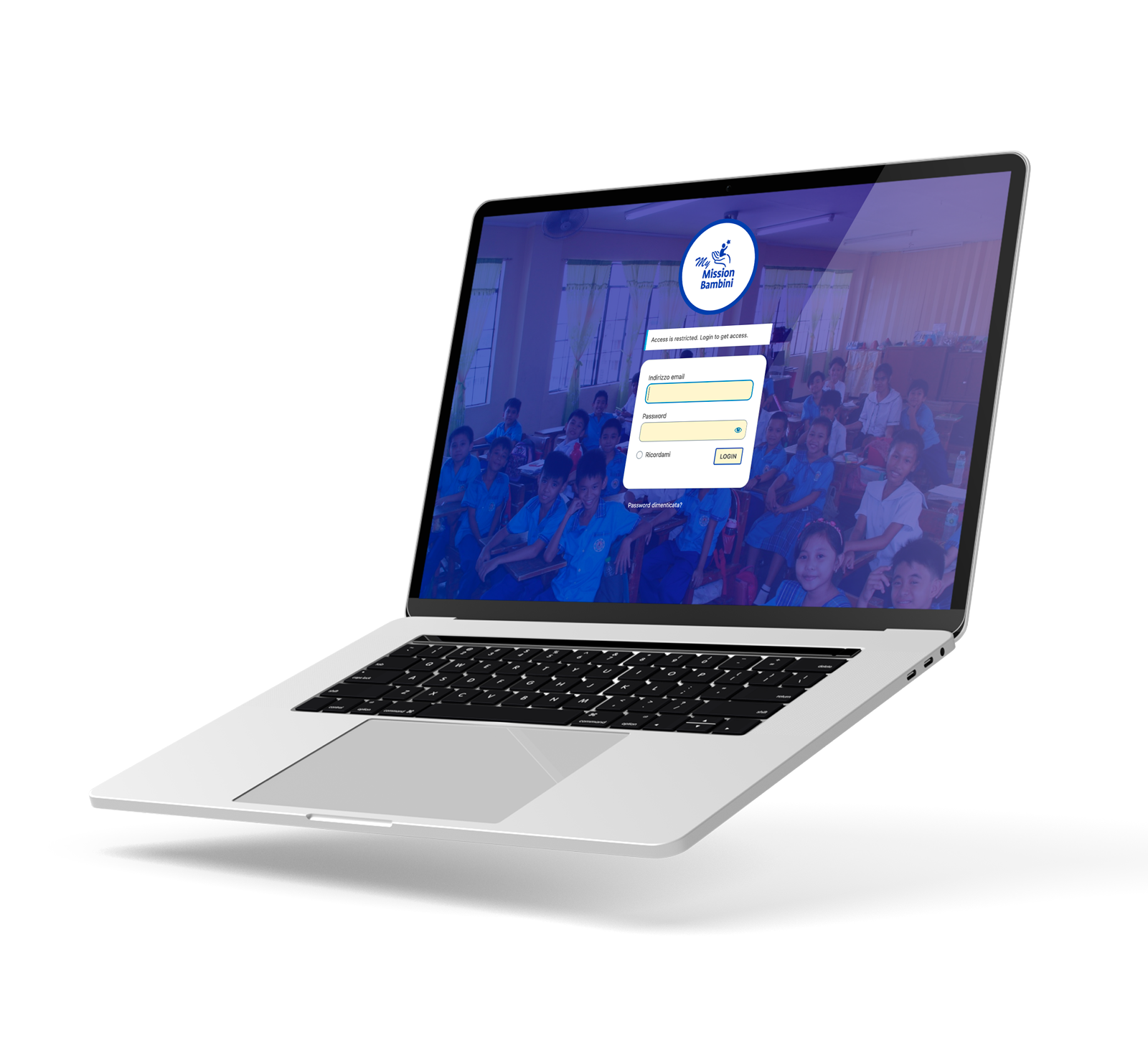 Per la progettazione del logo della piattaforma My Mission Bambini abbiamo mantenuto i colori istituzionali e il font già usati dall’organizzazione, e aggiunto un secondo carattere tipografico per mettere in evidenza “My”. In questo modo abbiamo garantito coerenza e fedeltà con l’identità visiva originale dell’organizzazione.